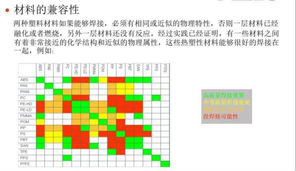 許多用戶(hù)詢(xún)問(wèn)彩色塑料組合間的焊接問(wèn)題,一般而言,其焊接難度和成本如下: